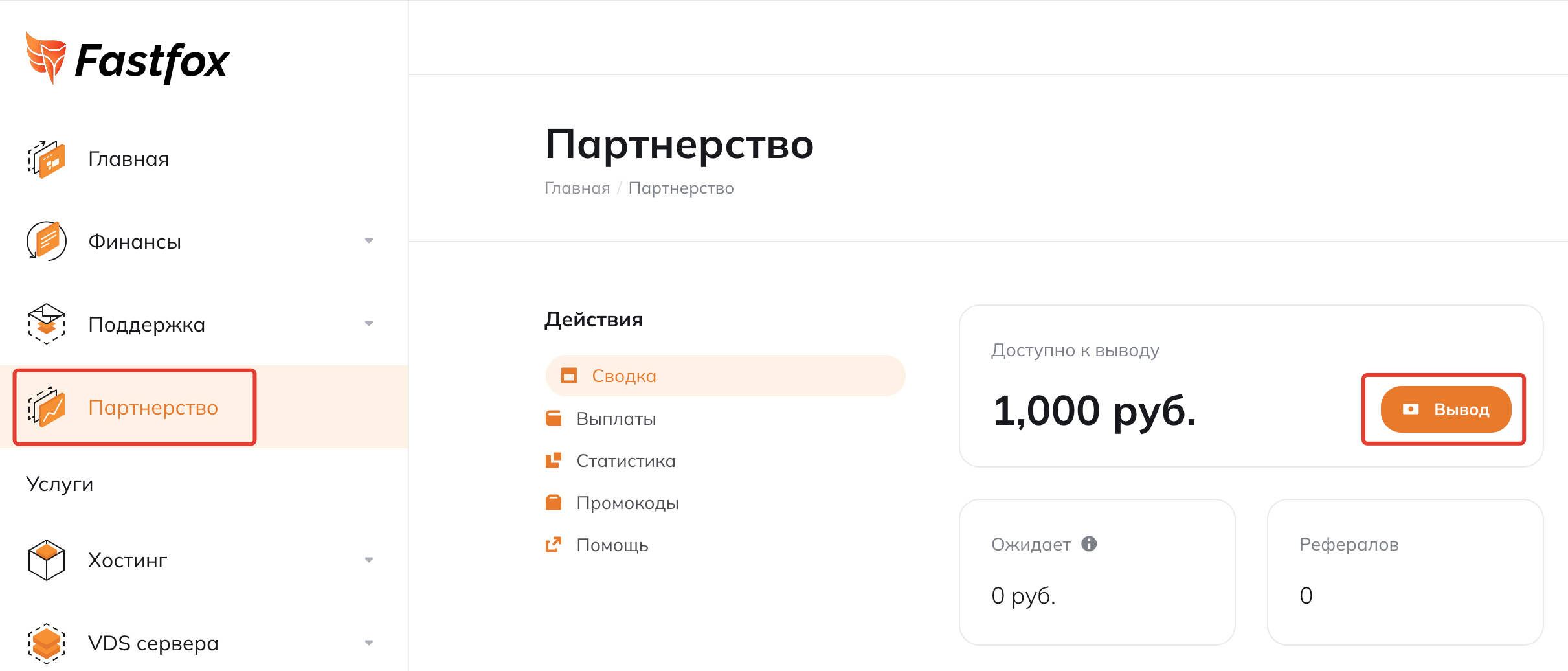 Вознаграждение по партнёрской программе можно вывести на карту/СБП или на расчётный счёт — в зависимости от типа аккаунта.