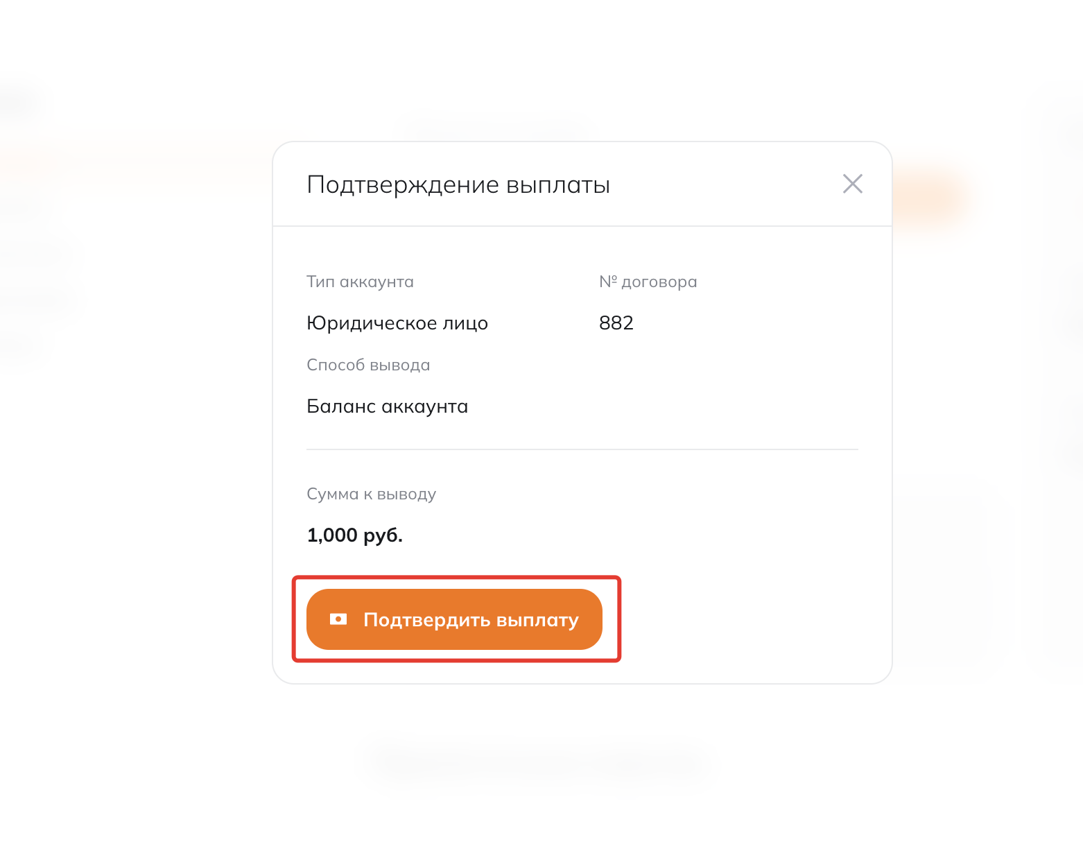 В модальном окне убедитесь, что данные верны и нажмите Подтвердить выплату